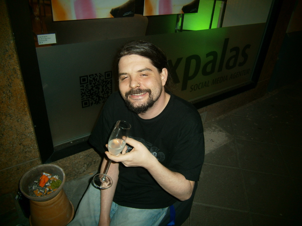 in der frühlingshaft lauen Nacht eher rauchenderweise davor kamen wir mal wieder nicht dazu, strikt programmatisch Tagesordnungspunkte abzuhandeln. Stattdessen fanden sich immer wieder wechselnde Gesprächsgrüppchen zum künstlerischen Austausch untereinander